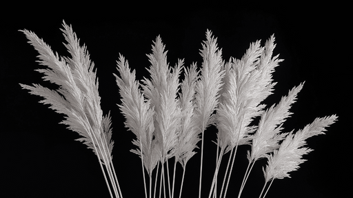 WonderMuralVores tapet har graciøse hvide pampas, der står ud mod en dyb sort baggrund, hvilket skaber en iøjnefaldende og elegant kontrast. Fjerdetaljerne er...