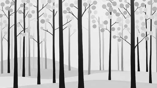 WonderMuralDette moderne tapet tilbyder en minimalistisk fortolkning af en stiliseret skov, med sorte og grå stammer, der stolt står på en ren hvid baggrund. ...
