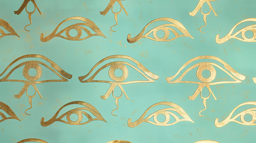 WonderMuralDette tapet har et fascinerende mønster af gyldne Horus' øjne på en lys turkis baggrund. Hvert øje, omhyggeligt detaljeret i guld, skaber en iøjnef...