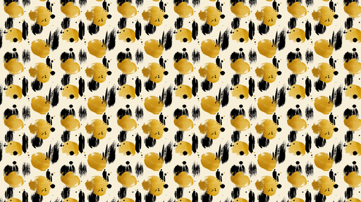 WonderMuralVores tapet har et fængslende abstrakt design, der blander gyldne cirkler og sorte plask på en lys baggrund. Denne farvekombination skaber en atmos...