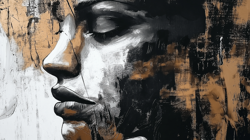 WonderMuralDette fængslende tapetmaleri har et abstrakt portræt af en kvinde, der fremhæver nuancer af sort og udbrud af guld, som blandes for at skabe en slå...
