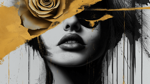 Se fulde detaljerTapet kunstnerisk ansigt | Elegant portræt med rose og gyldne skår