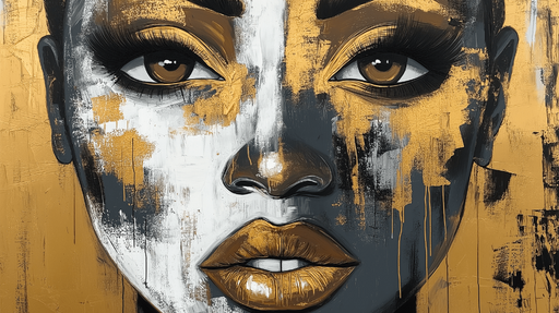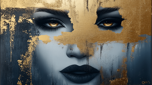 Se fulde detaljerTapet kunstnerisk ansigt | Iøjnefaldende portræt med gyldne strejf