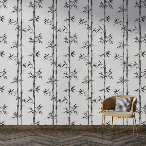 WonderMuralDenne fototapet har et elegant bambus-mønster, designet i nuancer af grå på en lys hvid baggrund, hvilket skaber en rolig og moderne atmosfære. De ...