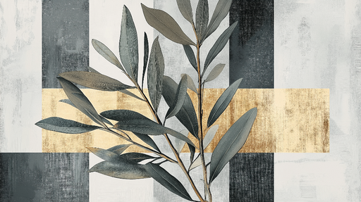 Se fulde detaljerElegant Fototapet | Grå blade og gylden baggrund