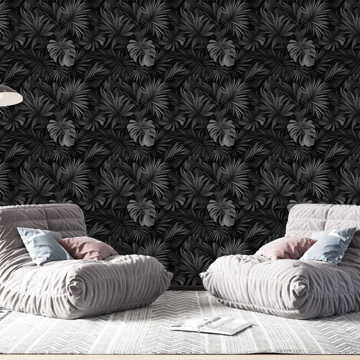 WonderMuralDenne tapet har et fængslende design af tropiske blade i nuancer af sort og grå, der skaber en elegant og mystisk stemning. De rige og varierede bl...