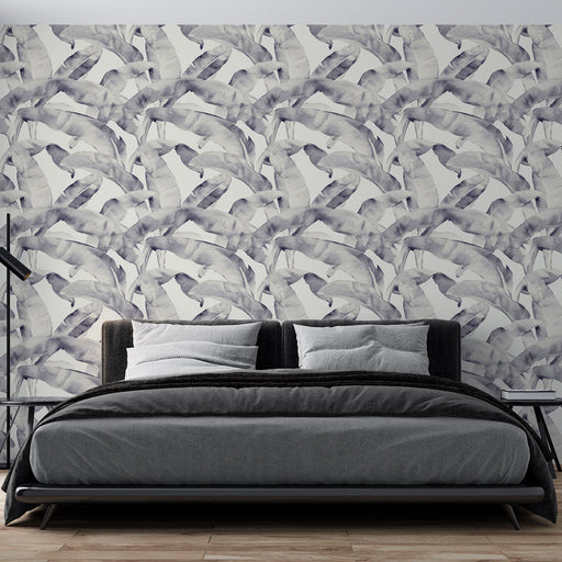 WonderMuralVores stilfulde Fototapet har et mønster af stiliserede bananblade, delikat tegnet i nuancer af grå. Lettheden i designet, kombineret med en lys b...