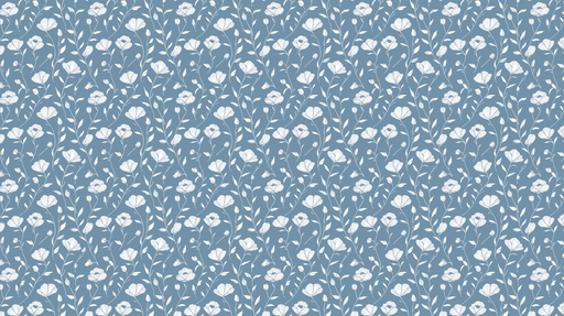 WonderMuralVoress eksklusive fototapet viser et smukt mønster af hvide blomster stiliseret på en blågrå baggrund, hvilket skaber en blød og beroligende atmosf...