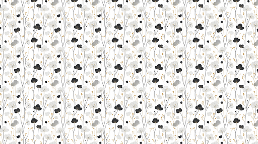 WonderMuralVores eksklusive fototapet viser et charmerende blomstermønster, der blander sorte og grå blomster med gyldne strejf, alt på en lys hvid baggrund. ...