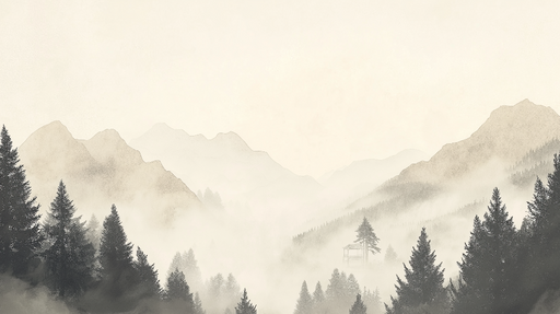 WonderMuralVores Fototapet viser et tåget bjerglandskab, hvor høje tinder blander sig i en mystisk og fredelig atmosfære. De bløde grå nuancer, kombineret med...