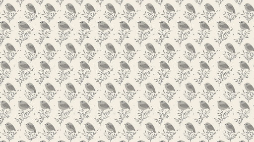 WonderMuralVores smukke eksklusive fototapet viser et charmerende design af små grå fugle, der sidder blandt elegante grene. Den cremede baggrund giver en blø...