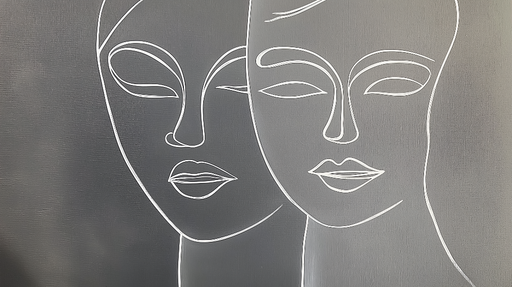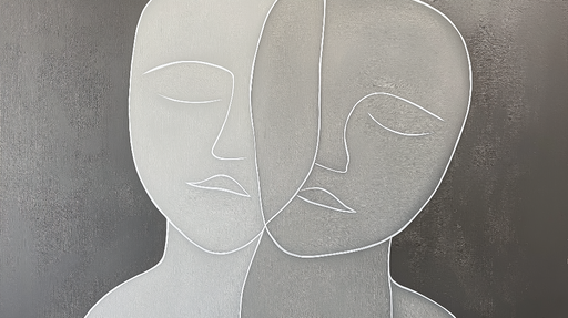 Se fulde detaljerTapet abstrakte ansigter | Minimalistisk silhuet af to ansigter på en grå baggrund
