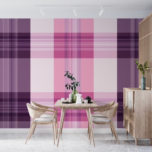 WonderMuralDette tartan tapet med skotsk tern mønster kombinerer nuancer af pink og lilla for at skabe en atmosfære, der er både blød og dynamisk. De rene og ...