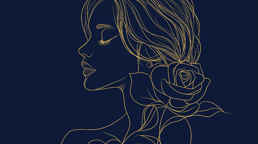 WonderMuralDenne fængslende tapetmur har en delikat kvinde silhouette omgivet af stiliserede roser, alle indstillet mod en dyb midnatsblå baggrund. De gyldne ...