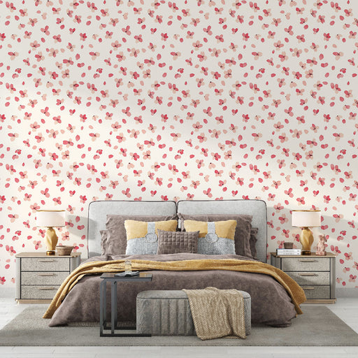 WonderMuralDenne charmerende fototapet har et mønster af lyse hvide blomster, delikat spredt på en blød lyserød baggrund. De små blomster, ledsaget af pollen,...