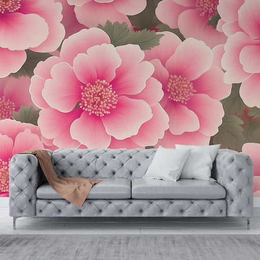 WonderMuralDette exceptionelle tapet fremhæver et frodigt blomstermønster bestående af smukke lyserøde blomster med delikate nuancer. Hver blomst er illustr...