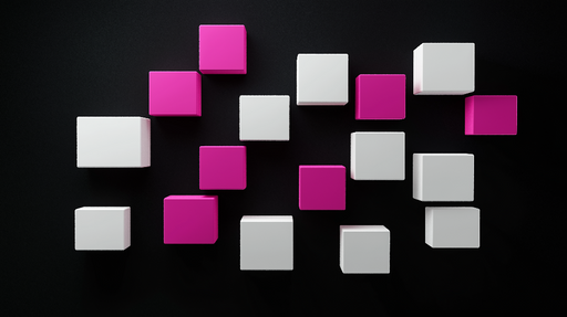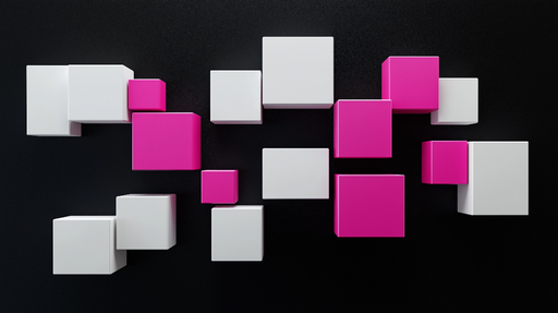 WonderMuralDette unikke tapet har et mønster af geometriske kuber i livlige lyserøde og hvide farver, harmonisk arrangeret på en dyb sort baggrund. Kombinatio...