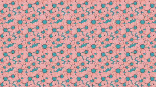 Se fulde detaljerFototapet med blomstermønster | Lyserøde blomster og turkise centre på kontrastfuld baggrund
