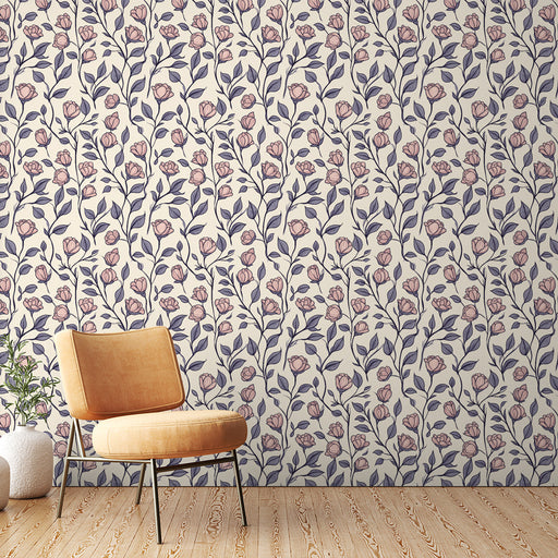 WonderMuralOplev vores blomstrede fototapet, et levende mønster af pink blomster og marineblåt løv, delikat tegnet på en beroligende cremefarvet baggrund. Far...