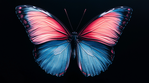 WonderMuralDette tapetillustrerer en fantastisk sommerfugl med livlige vinger, der kombinerer blå og pink nuancer, der straks fanger opmærksomheden. Den sorte...