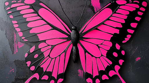 WonderMuralDette fascinerende tapet fremhæver en livlig pink sommerfugl med sorte accenter på en mørk tekstureret baggrund, der forstærker dens tiltrækningskr...