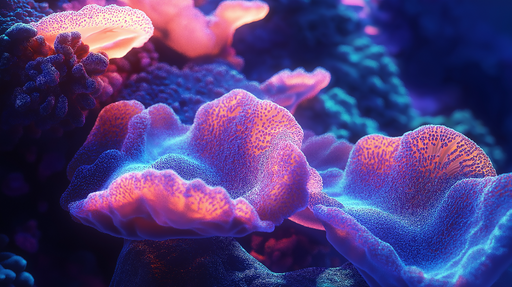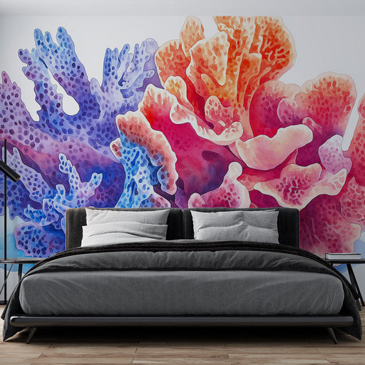 WonderMuralDette tapet fremhæver en storslået akvarelillustration af koraller i livlige nuancer, der spænder fra blå til lyserød og orange. De fine detaljer o...