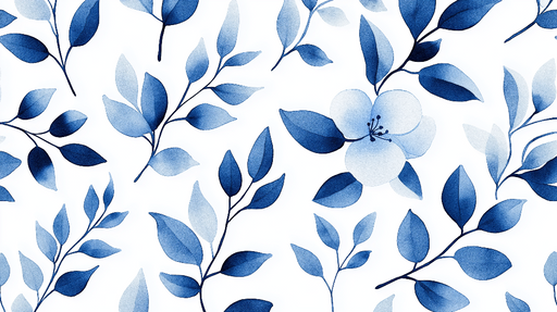 WonderMuralBlå Vandfarve Foliage Tapet Denne tapet fremviser delikate blade og blomster i forskellige nuancer af blå, hvilket skaber en atmosfære, der er både...