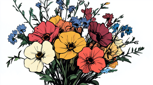 Se fulde detaljerFototapet farverige blomster | Levende buket af akvarelblomster