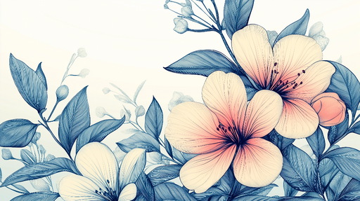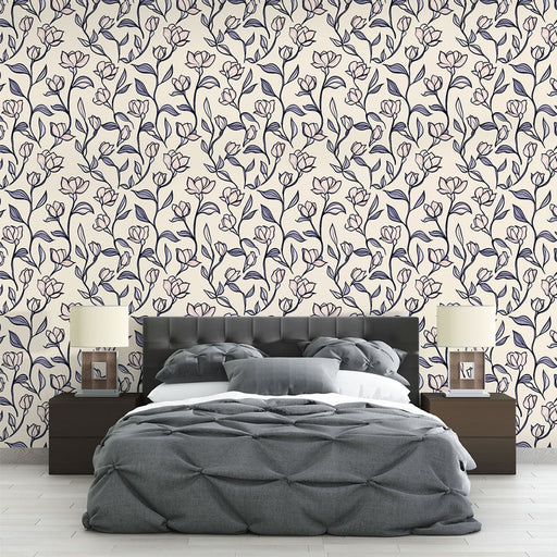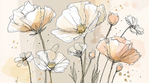 WonderMuralVores tapet fremhæver et smukt motiv af delikate blomster, illustreret med fine konturer og vandfarve strejf. De subtile nuancer af hvid og fersken...