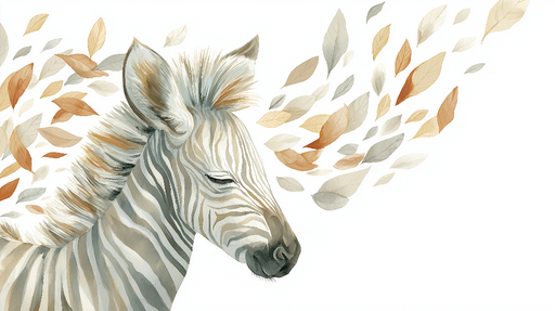 WonderMuralVores eksklusive fototapet repræsenterer en fint illustreret zebra, hvis beroligende gang accentueres af et pust af efterårsfarvede blade. Nuancern...