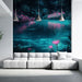 Oplev vores fototapet inspireret af et fortryllende akvatisk landskab, hvor lyserøde lotusblomster elegant flyder på en sø med klare refleksioner. Kontrasten mellem det dybe blå vand og strejf af levende pink skaber en magisk atmosfære, der inviterer til ro.