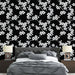 Denne fototapet har et elegant motiv af hvide blomster på en dyb sort baggrund. De fint tegnede blomster fletter ind i hinanden for at skabe et design, der er både raffineret og dristigt, ideelt til at tilføje et strejf af sofistikation til dine rum.
