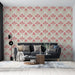 Vores smukke fototapet tilbyder et dejligt mønster af stiliserede blomster i delikate nuancer af pink og beige, hvilket bringer en følelse af varme og elegance til dine rum. De bløde former og pastelfarver skaber en imødekommende og romantisk atmosfære, ideel til en charmerende indretning.