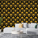 Gylden Floral Fototapet | Elegant Sort Baggrund med Gult Blomstermønster