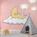 Perfekt til et børneværelse eller legestue, inviterer denne fototapet til dagdrømme og fantasi. Søde detaljer som de funklende stjerner omkring, fuldender dette sjove natte landskab.