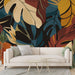 Denne tropiske fototapet tilbyder en eksplosion af lyse farver med blade i nuancer af orange, gul, burgunder og blå. Et perfekt valg for at infusere en eksotisk og dynamisk atmosfære i ethvert rum, om det er dit stue eller soveværelse.