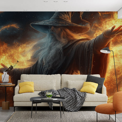 Opdag vores fængslende fototapet, der viser en troldmand, der kaster en eksplosion af magisk lys i hjertet af en stjerneklar himmel. De dybe nuancer af blå og orange skaber en mystisk atmosfære, der indbyder til flugt og fantasi. Dette dynamiske mønster er perfekt til dem, der ønsker at tilføje et strejf af fantasi til deres rum.