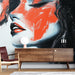 Tapet abstrakt portræt | Kvinde med røde læber og sorte linjer