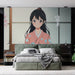 Denne tapet har en ung kvinde elegant klædt i en lyserød kimono prydet med blå blomster, der sidder fredeligt med en kop i hånden. De delikate kirsebærblomster i baggrunden og den traditionelle japanske stemning bringer en følelse af ro og forfinelse til ethvert rum. Ideel til at skabe en zen og elegant atmosfære.