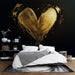 Denne mural tapet har et skinnende gyldent hjerte håndmalet på en dyb sort baggrund, der skaber en kontrast, der er både elegant og modig. De synlige penselstrøg og gyldne sprøjt tilføjer en kunstnerisk og udtryksfuld dimension, perfekt til dem, der søger et glamourøst touch i deres interiør.