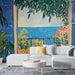 Par dette tapetmaleri med lette træmøbler, naturstoffer og farverige tilbehør for et harmonisk udseende. Blå og grønne nuancer kan accentueres med blomstermønstrede stoffer eller rattanelementer.