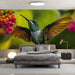 Dette fængslende tapetmaleri har en majestætisk kolibri i flyvning, omgivet af levende blomster i rosa og orange nuancer. Kolibrienes iriserende fjer, med deres grønne nuancer, tilføjer et strejf af dynamik til din indretningsdekoration.