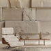 Denne tapetmural fremkalder stenvægge med en delikat blanding af hvide og beige nuancer. De forskellige teksturer og former på fliserne skaber en varm og imødekommende atmosfære, samtidig med at de giver en følelse af robusthed og autenticitet.
