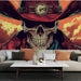 Vores tapet har en cowboy kranium i en levende grafisk stil, der blander røde og blå farver for at skabe en iøjnefaldende kontrast. Dette fængslende design vækker en atmosfære af mystik og karakter, perfekt til dristige kunstentusiaster.