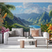 Giv dit interiør et paradisisk touch med vores tropiske landskabstapet. Dette livlige design har en betagende udsigt over frodige bjerge og en smuk kystlinje, omgivet af farverige tropiske blomster som hibiscus og orkideer. Ideel til at skabe en afslappende og eksotisk atmosfære i dit opholdsrum eller soveværelse.