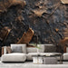 Dette mural tapet skiller sig ud med sit metalliske udseende, der vækker en bevidst aldret overfladetekstur, der blander nuancer af dyb sort og bronze. Hvert detalje synes at fortælle en historie gennem sine fordybninger og relieffer, hvilket giver en unik dimension til dit rum. Ideel til at skabe en industriel eller moderne atmosfære er dette mural tapet perfekt til accentvægge, lofter eller endda renoveret møbler. Det harmonerer smukt med lyse træelementer eller metal møbler og tilbyder en iøjnefaldende kontrast. De farver, der skal kombineres, inkluderer neutrale nuancer som grå, hvid eller beige, der vil fremhæve intensiteten af dette designs mørke og blanke toner. Vi anbefaler at kombinere det med dekorative tilbehør i metal eller glas for at forstærke denne moderne og stilfulde effekt. Råd fra WonderMural.com: Brug dette mural tapet i et godt oplyst rum, så de metalliske refleksioner skaber lys effekter og tilføjer dybde til dit rum.