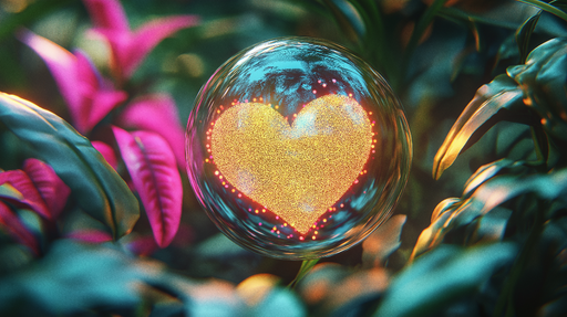 WonderMuralDiese prächtige dekorative Kugel zeigt ein schimmerndes Herz-Motiv umgeben von üppigen Blättern und lebendigen Blumen. Mit ihrem fesselnden Design ...