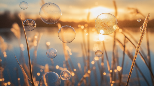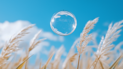 WonderMuralDieses faszinierende Bild zeigt eine zart schwebende Seifenblase über einem Feld von goldenen Gräsern. Der Kontrast zwischen der Transparenz der Bl...