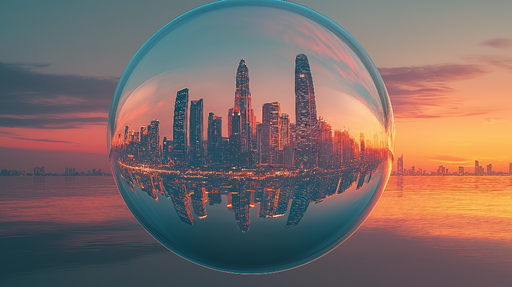 Vollständige Details anzeigenTapete urban-bubble | Architektonische Reflexionen in der Dämmerung