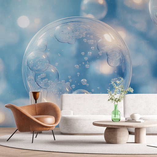 WonderMuralDiese faszinierende Tapete zeigt auffällige Wasserblasen, die einen faszinierenden visuellen Effekt erzeugen, der Leichtigkeit und Fluidität hervo...